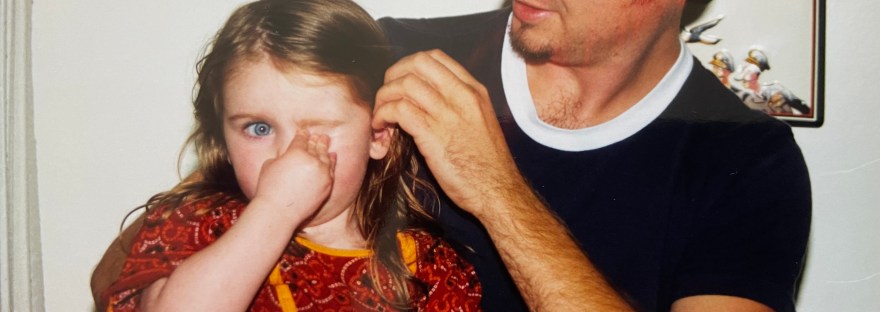 “She had turned 3, this chatty little girl, who was cute in both senses of the word, had eyes that matched Trevor’s jeep. The color of the Californian skies. She called him treasure. I have a picture of him carrying her on his shoulders; the sun sparkling through her party pink butterfly wings. “